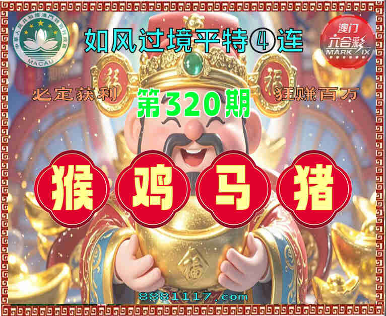 320期:《如风过境》 🏅平特④连🏅【猴鸡马猪】开:猴34,鸡33,马48,猪07