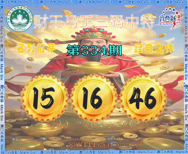 334期:〖财王马王〗 ♣️三码中特♣️【15.16.46】开:46