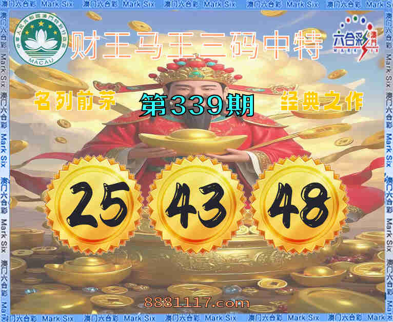 339期:〖财王马王〗 ♣️三码中特♣️【25.43.48】开:48