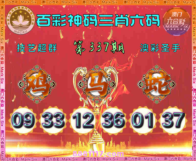 337期:〖百彩神码〗 🚣三肖六码🚣【马蛇】开:鸡09