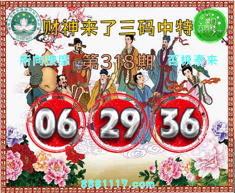 318期: 🥉『财神来了』 🥉三码中特🥉【06.29.36】开:06