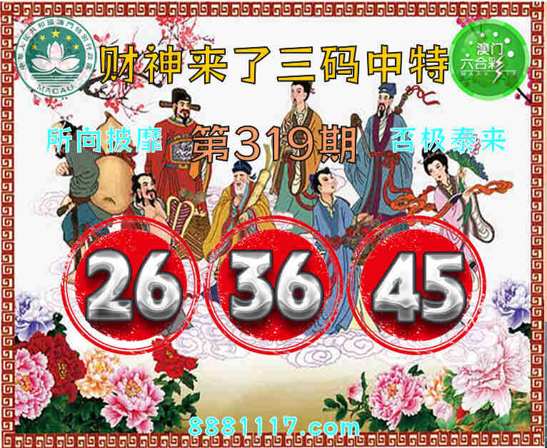 319期: 🥉『财神来了』 🥉三码中特🥉【26.36.45】开:45