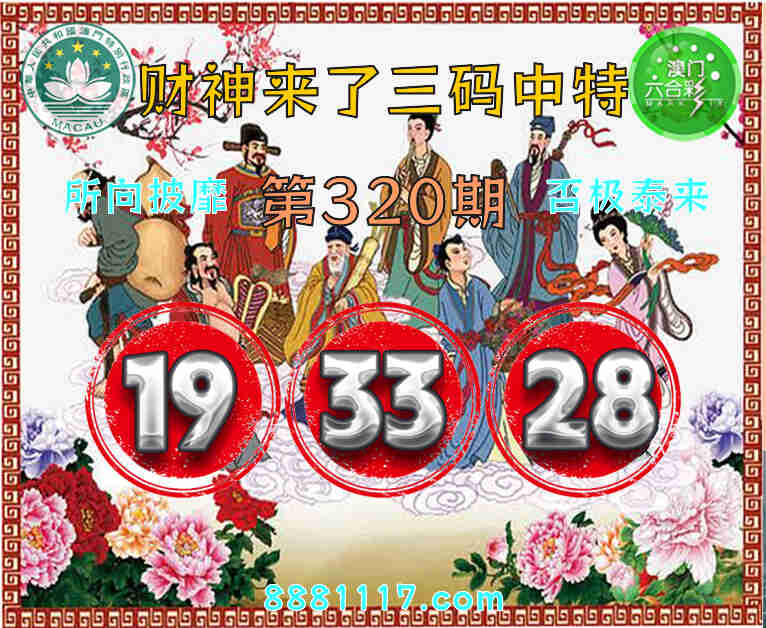 320期: 🥉『财神来了』 🥉三码中特🥉【19.33.28】开:28