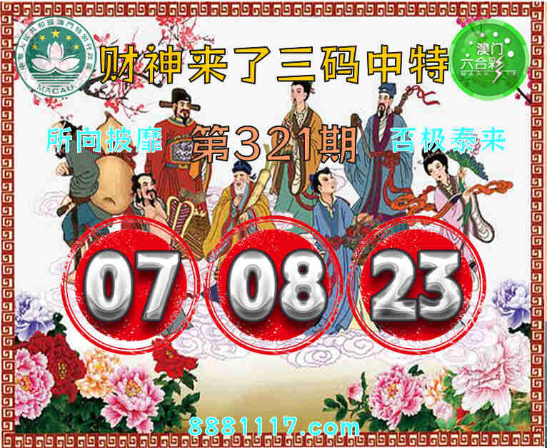 321期: 🥉『财神来了』 🥉三码中特🥉【07.08.23】开:23