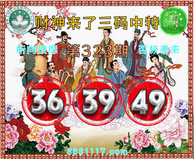 323期: 🥉『财神来了』 🥉三码中特🥉【36.39.49】开:09