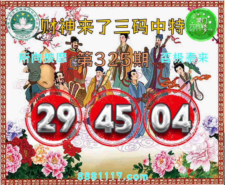 325期: 🥉『财神来了』 🥉三码中特🥉【29.45.04】开:04