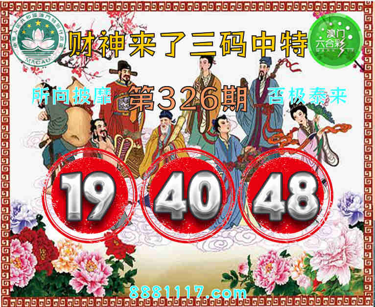 326期: 🥉『财神来了』 🥉三码中特🥉【19.40.48】开:19