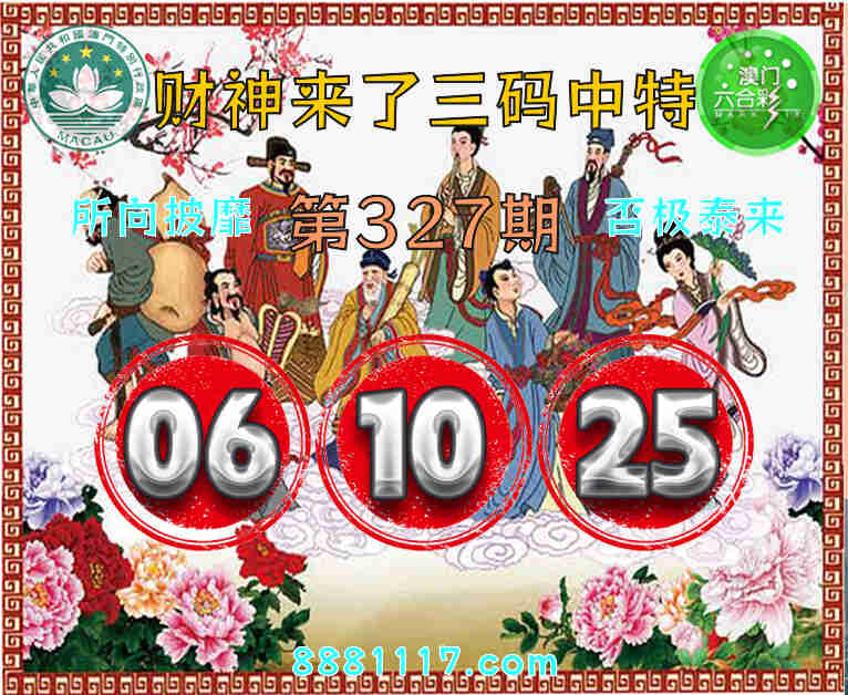 327期: 🥉『财神来了』 🥉三码中特🥉【06.10.25】开:37