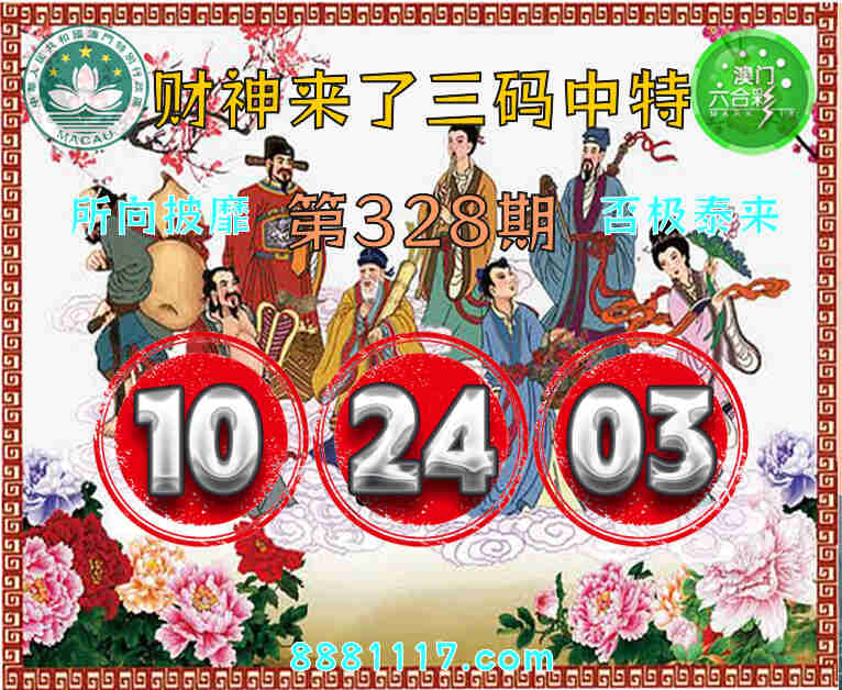 328期: 🥉『财神来了』 🥉三码中特🥉【10.24.03】开:03