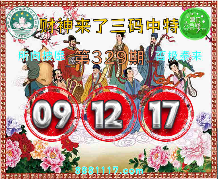 329期: 🥉『财神来了』 🥉三码中特🥉【09.12.17】开:17