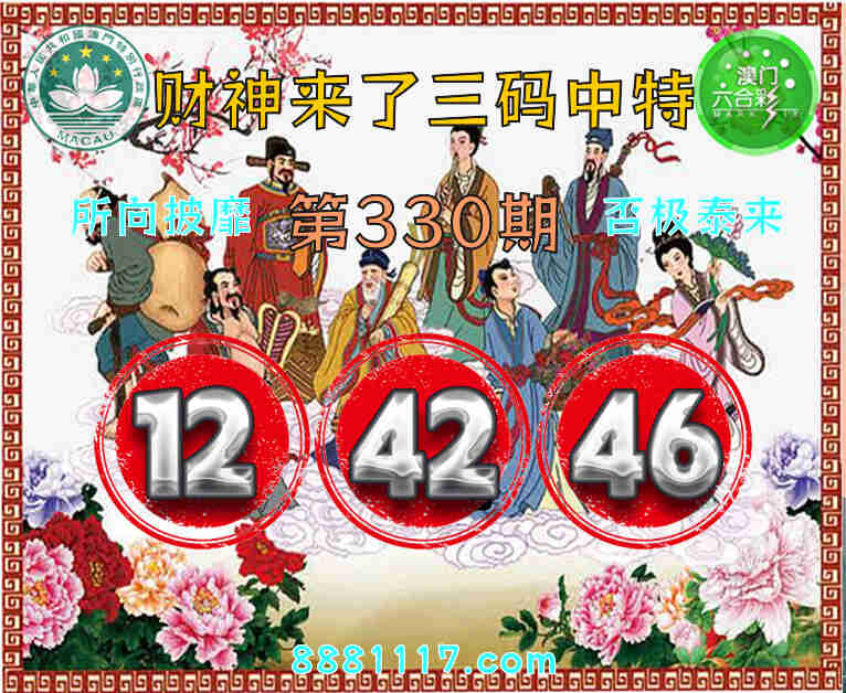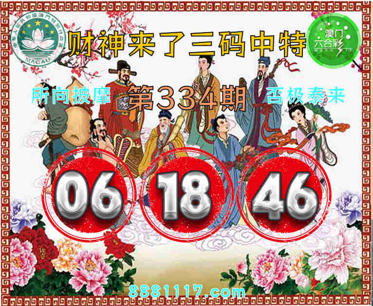 334期: 🥉『财神来了』 🥉三码中特🥉【06.18.46】开:46