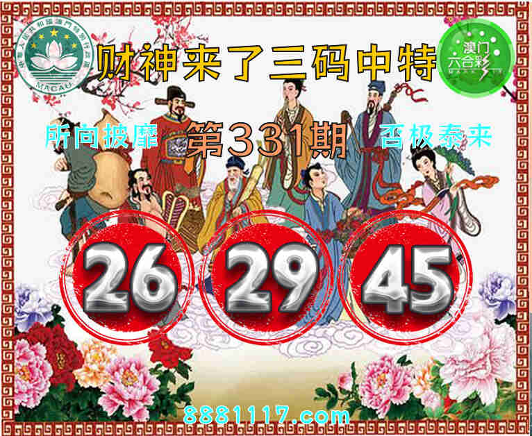 331期: 🥉『财神来了』 🥉三码中特🥉【26.29.45】开:26