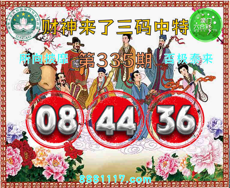 335期: 🥉『财神来了』 🥉三码中特🥉【08.44.36】开:44