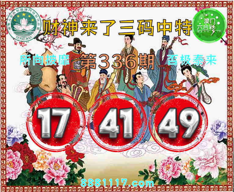 336期: 🥉『财神来了』 🥉三码中特🥉【17.41.49】开:17