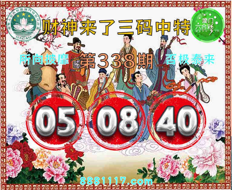 338期: 🥉『财神来了』 🥉三码中特🥉【05.08.40】开:08