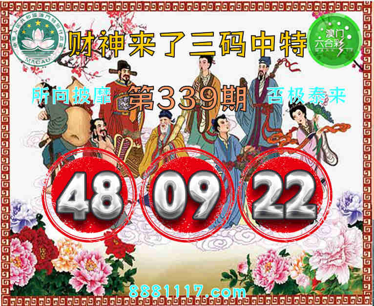 339期: 🥉『财神来了』 🥉三码中特🥉【48.09.22】开:48