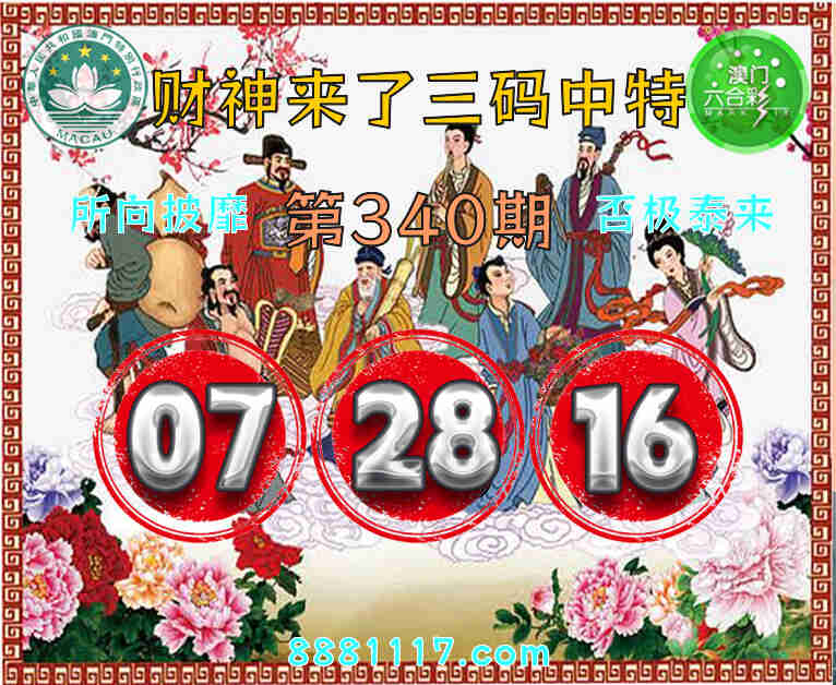 340期: 🥉『财神来了』 🥉三码中特🥉【07.28.16】开:16