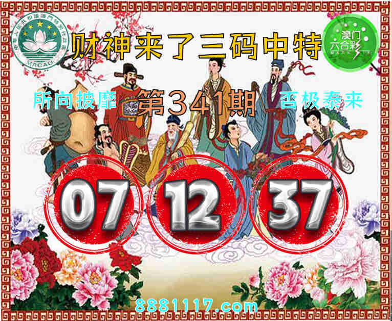341期: 🥉『财神来了』 🥉三码中特🥉【07.12.37】开:00准
